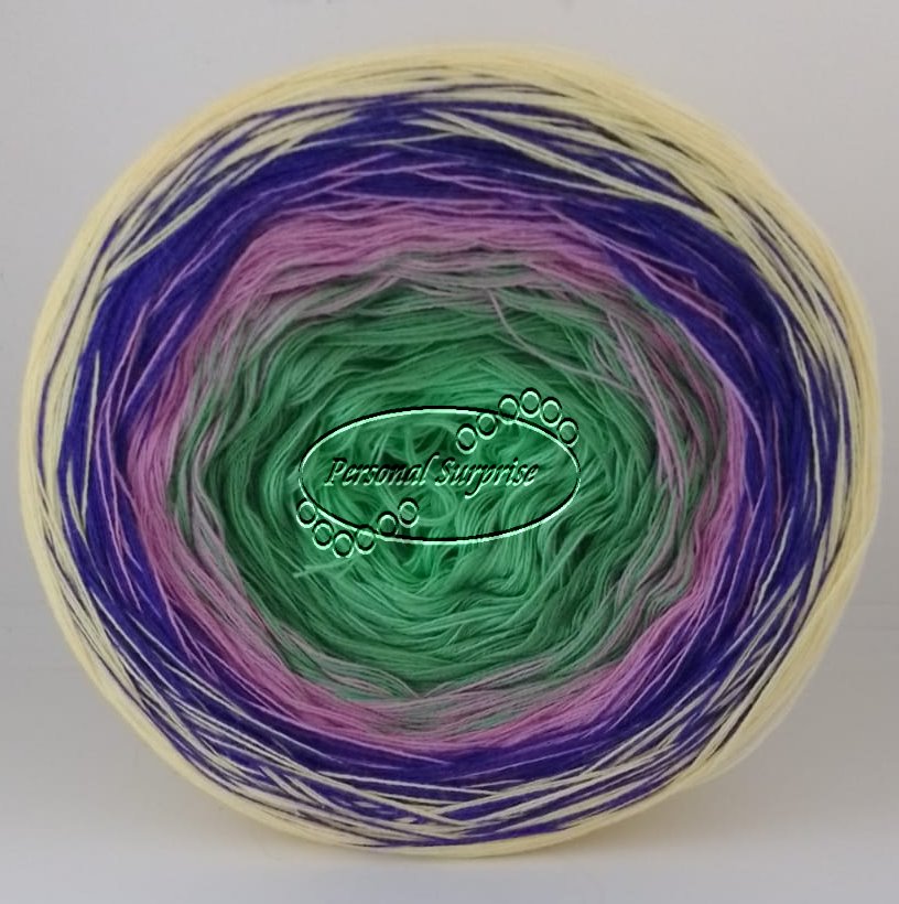 Der Bobbel ist einfarbig gewickelt, wobei die Farben sanft ineinander übergehen – ideal für einen weichen und natürlichen Farbverlauf in deinen Handarbeitsprojekten.